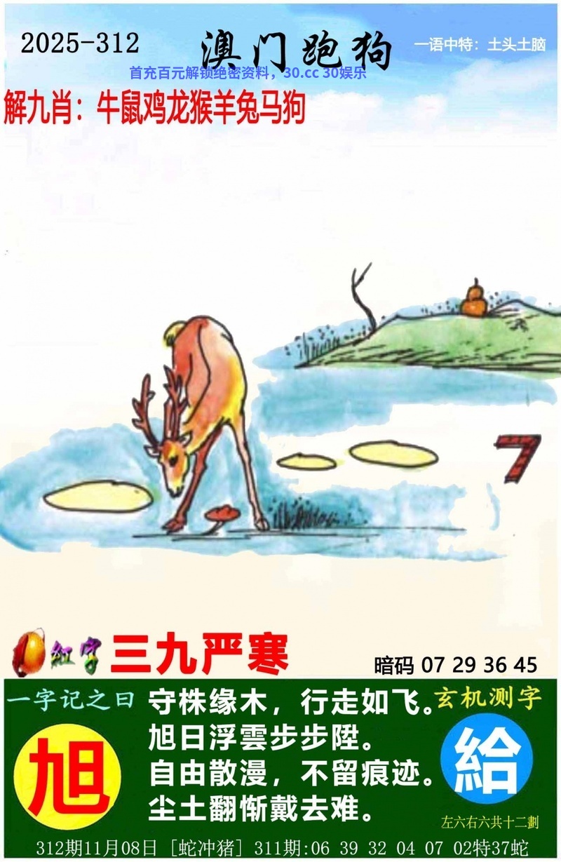 | 311期:九肖 | 鸡龙猪蛇兔猴狗马牛 | 蛇37中 |