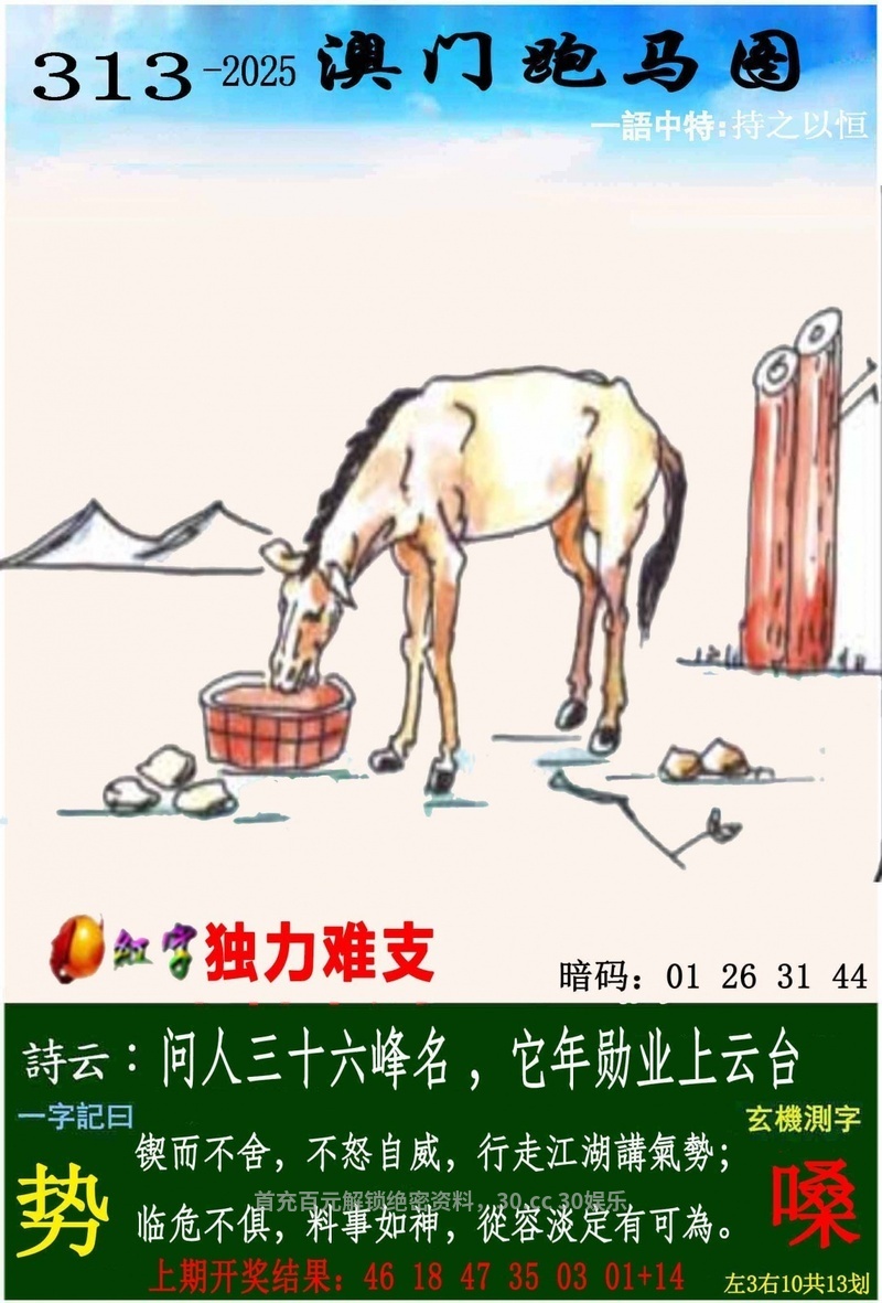 | 314期:七肖 | 蛇羊虎猴兔牛马 | 羊23中 |